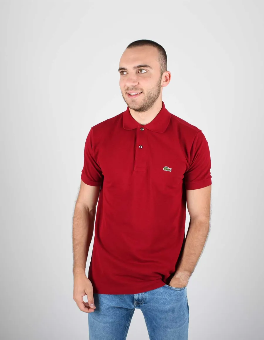 Polo manica corta in piquet bordeaux, collo a 2 bottoni in madreperla, bordi a costine su collo e maniche, logo coccodrillo verde ricamato, classic fit. Materiale: 100% cotone