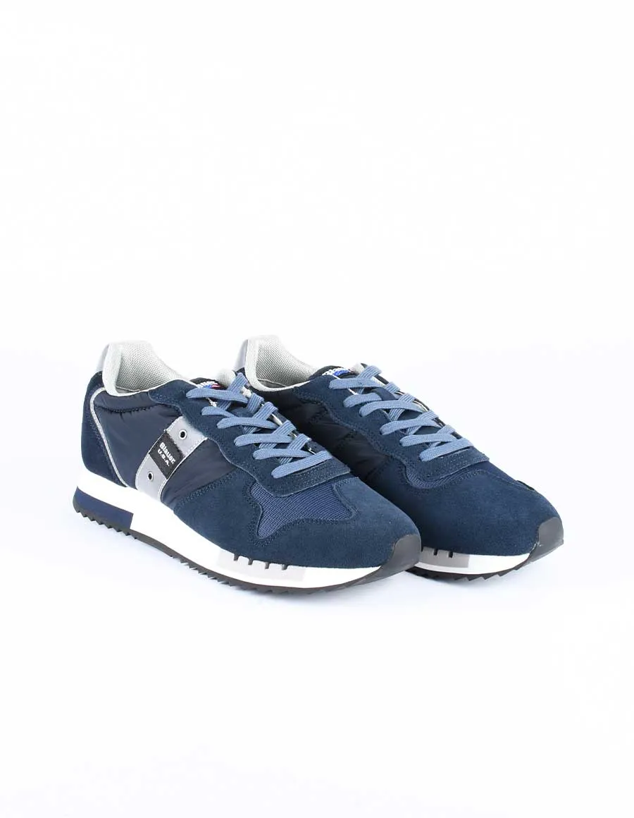 Sneaker navy con inserti in pelle scamosciata. Dettaglio sul lato e tallone riflettente. Logo patch a contrasto nero ricamato sul lato e inserti in nylon. Laccio di ricambio bianco. Tomaia in pelle, ecopelle e tessuto, interno in tessuto, pelle ed ecopelle, suola in gomma.