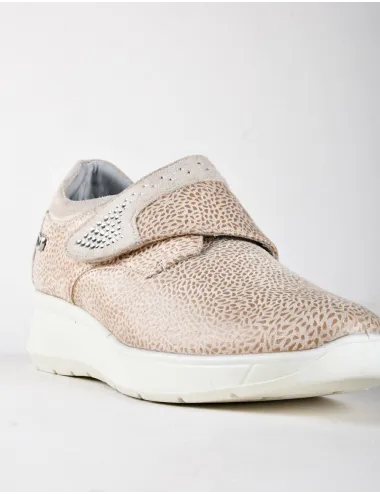 Sneaker donna panna con stampa logo all over impresso. Dettaglio tono su tono sul tallone. Platou: 3 cm. Tomaia in ecopelle, interno in tessuto e suola in gomma