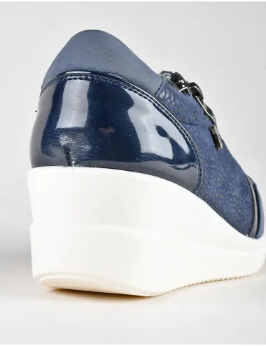 Mocassino in pelle scamosciata con tacco donna navy. Cuciture puntinate tono su tono e decorazione metallica sulla punta. Sottopiede rivestito in pelle per assicurare traspirabilità e igiene. Tacco 3,5 cm. Tomaia in pelle, interno in pelle e suola in gomma. Codice prodotto: 13084-1.