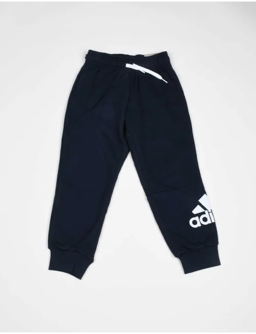 Pantalone bimbo/a blu notte con elastico in vita e coulisse a vista. Realizzato in tessuto garzato. Maxi logo a contrasto bianco su gamba sinistra. Materiale: 53% cotone 36% poliestere riciclato