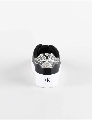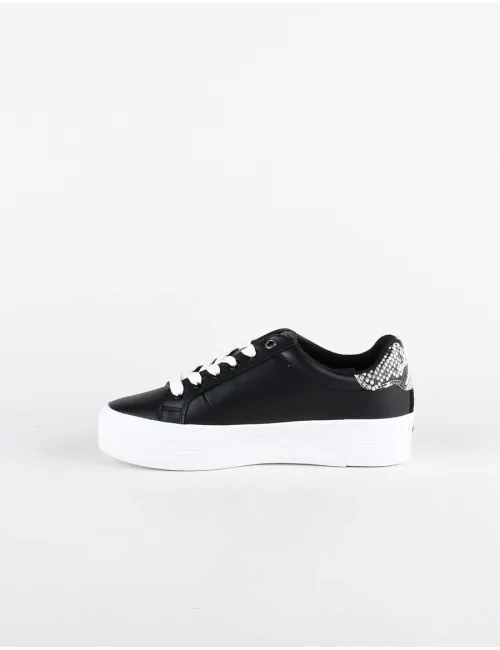 Sneaker donna nera con maxi logo laterale tono su tono realizzato a rilievo. Inserto posteriore in stampa rettile. Suola platform 4 cm. Tomaia in pelle, interno in tessuto e suola in gomma.