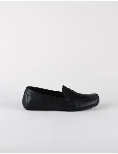 Mocassino uomo nero realizzato in pelle con traversina. Modello classico e dalle linee semplici, è la scelta ideale per l'uomo dinamico che presta attenzione ai dettagli. Dall'ufficio al tempo libero il comfort è assicurato, tomaia semifoderata realizzata in pelle, sottopiede estraibile in shock absorber ricoperto in pelle. Suola in gomma leggera e flessibile con dots che garantiscono grip. Tomaia in pelle, interno in pelle e suola in gomma