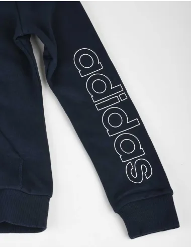Pantalone bimbo/a royal con elastico in vita e coulisse a vista. Interno garzato. Loghi trefoil multicolor a contrasto. Realizzato in collaborazione con Better Cotton Initiative. Materiale: 70% cotone 30% poliestere riciclato