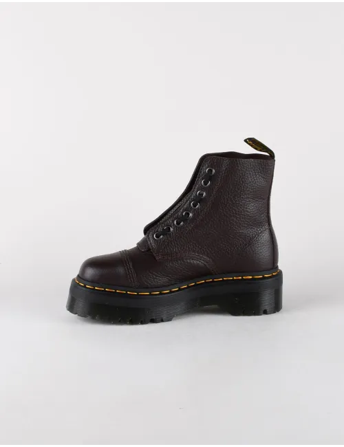 Iconici anfibi donna cioccolato. Fornito di una zip frontale rimovibile, cuciture gialle a filetto e tanto carattere Docs, poggia su una suola platform Quad ed è pensato per catturare l'attenzione ad ogni passo. Milled Nappa è una pelle martellata robusta, resistente e al tempo stesso elastica e morbida al tatto sin dal primo utilizzo. Le nostre linee con guardolo Goodyear sono sigillate a caldo a 700°C e rinforzate con le nostre caratteristiche cuciture. Altezza platform: 4 cm. Tomaia in pelle, interno in pelle ed ecopelle, suola in gomma
