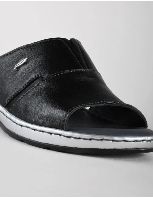 Ciabatta donna nera con inserto in elestico per facilitare la calzata. Zeppa 5 cm. Tomaia in pelle, interno in pelle e suola in gomma