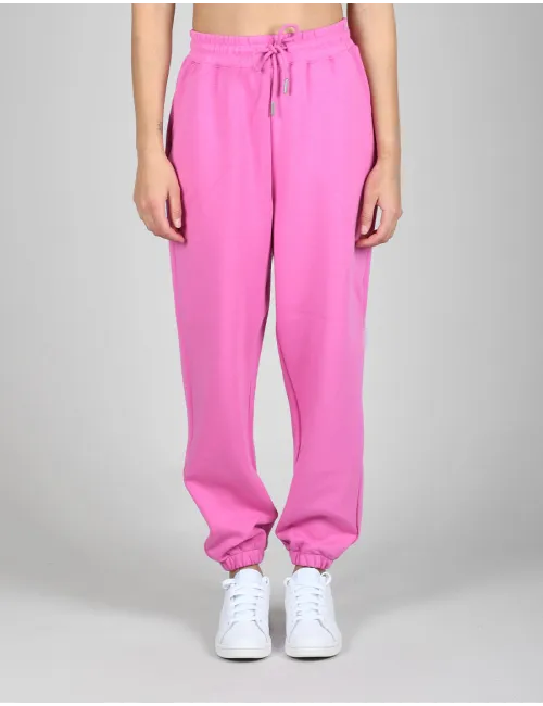 Pantalone fucsia con elastico in vita e coulisse a vista. Interno mano pesca. Materiale: 60% poliestere 40% viscosa