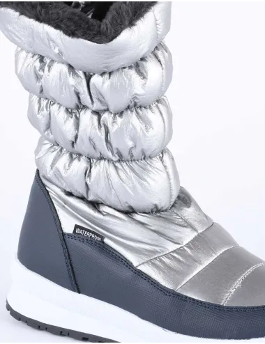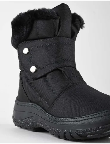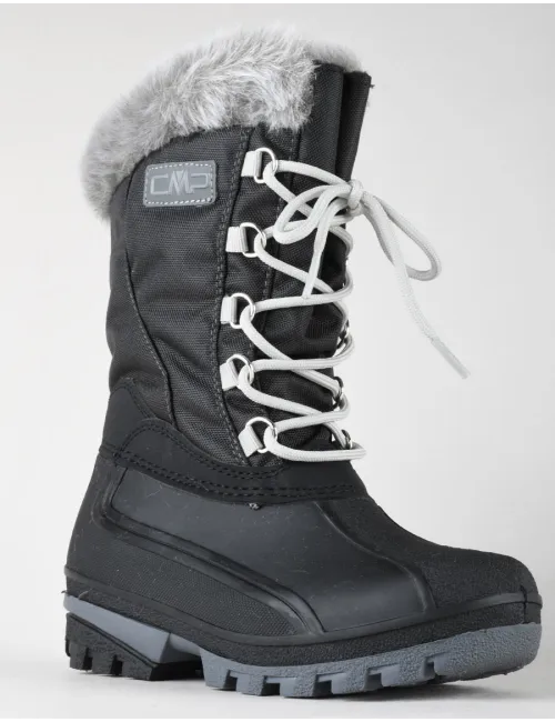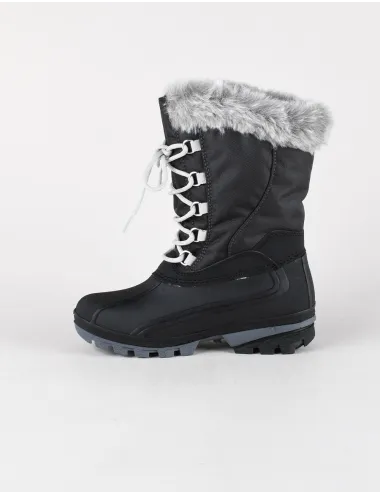 Dopo sci donna alto al polpaccio nero con contrasto ghiaccio melange. Chiusura con lacci ed interno foderato in caldo pile. Protezione dall'acqua in caso di pioggia e bagnato. Tomaia in ecopelle e tessuto, interno in tessuto e suola in gomma.