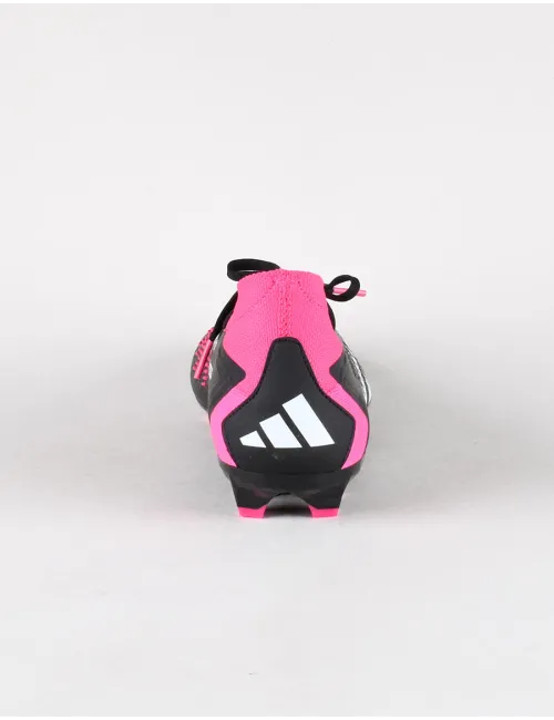 Scarpa da calcio unisex nera con contrasto rosa fluo e bianco. Chiusura con lacci. La morbida tomaia HybridTouch di queste scarpe da calcio presenta un collarino mid-cut in tessuto knit per una maggiore stabilità e una soletta sagomata per una calzata perfetta. Gli elementi in gomma High Definition Grip nell'area di tiro migliorano la precisione quando colpisci il pallone. La suola ti aiuta a dare il massimo su diversi tipi di superficie. La tomaia è composta per almeno il 50% da un mix di materiali riciclati. Questo prodotto è solo una delle nostre azioni concrete per contrastare l'inquinamento causato dalla plastica. Tomaia in ecopelle e tessuto, interno in ecopelle e tessuto, suola in gomma