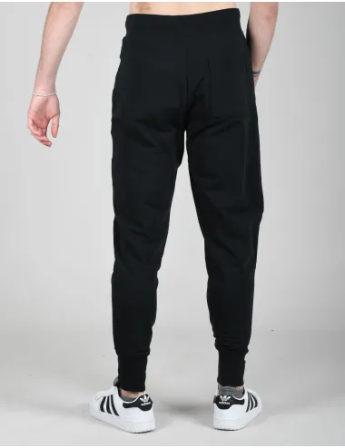 Pantalone nero con elastico in vita e coulisse a vista. Logo gommato a contrasto bianco ed interno garzato. Materiale: 94% cotone 6% elastane
