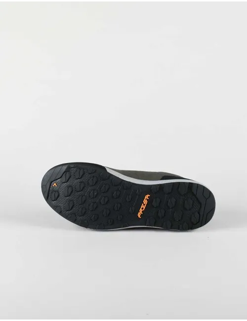 Sneaker uomo antracite con contrasto nero e grigio. SPIRIT rappresenta il punto di congiunzione fra tempo libero e climbing. In cotone Canvas 70% riciclato e 30% biologico. Il bordo di protezione sulla parte anteriore è in gomma riciclata e avvolge l’intersuola. La comodità è un punto di forza di queste calzature, caratterizzate da una larga vestibilità. Suola PRESA® APR-02, dall’aspetto solido e compatto, con intersuola in EVA compressa a media densità (15 % riciclata). Il battistrada è realizzato per un 40% di gomma riciclata ed un 30% di gomma naturale. I lacci in PE 100% riciclato, derivato da materiali per l’imballaggio, bottiglie e contenitori per alimenti. Tomaia in tessuto, interno in tessuto e suola in gomma.