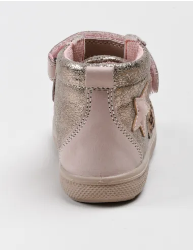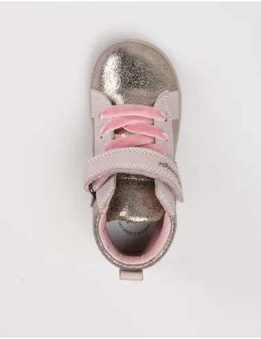 Sneaker bimba rosa antico alta alla caviglia ad effetto lucido con contrasti in pelle. Inserti a rilievo sui lati esterni a contrasto leopardato e rosa. Chiusura con strappo velcro regolabile e lacci elastici. Calzatura leggera dalla massima flessibilità, sottopiede antishock,traspirante anatomico estraibile, forma ergonomica e parti in metallo nickel free. Tomaia in pelle ed ecopelle, interno in tessuto e pelle, suola in gomma.