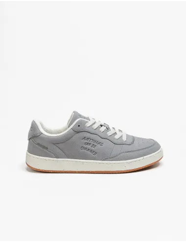 Sneaker uomo antracite in suede con inserto scritta tono su tono ai lati esterni. Punta traforata per garantire la massima traspirazione. Realizzato al 100% con materiali ecosostenibili. Tomaia in ecopelle, interno in tessuto, suola in gomma.