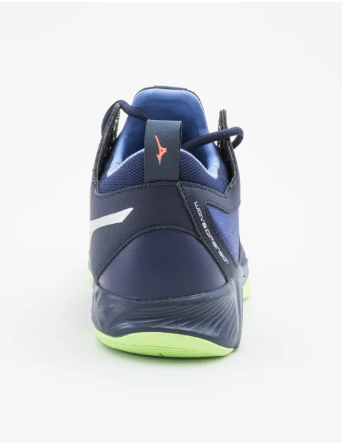 Scarpa da pallavolo uomo navy con logo a contrasto verde fluo ai lati. Realizzate con una tomaia AIRmesh, offrono la massima traspirabilità e comfort. Dotata di una struttura senza cuciture e una punta rinforzata, rivestita con parti TUP. La tecnologia Wave è integrata nell'intersuola per offrire flessibilità e supporto, inoltre lavora per assorbire lo shock senza compromettere il comfort o l'ammortizzazione. Un componente ad alte prestazioni denominato XG Rubber viene utilizzato sulla suola per migliorare la trazione. Suola 4 cm. Tomaia in tessuto ed ecopelle, interno in tessuto, suola in gomma.