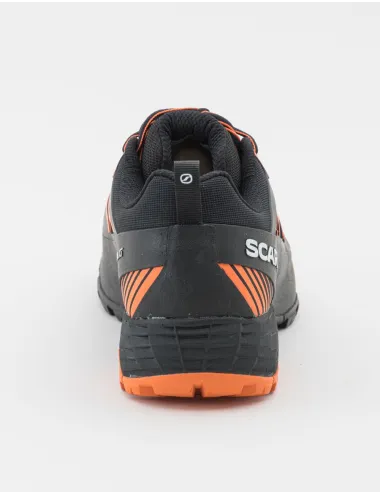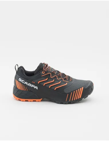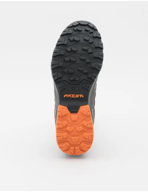 Scarpa uomo da trail running nera con inserti a contrasto arancione fluo. La calzata avvolgente e comoda la rende perfetta per un utilizzo prolungato. Il fascione in TPU richiama l’iconico design della famiglia Ribelle Run, mentre la suola è progettata con un sistema supportivo che garantisce una falcata stabile e ammortizzata per affrontare ogni tipologia di terreno. Tomaia in tessuto ed ecopelle, interno in tessuto, suola in gomma.