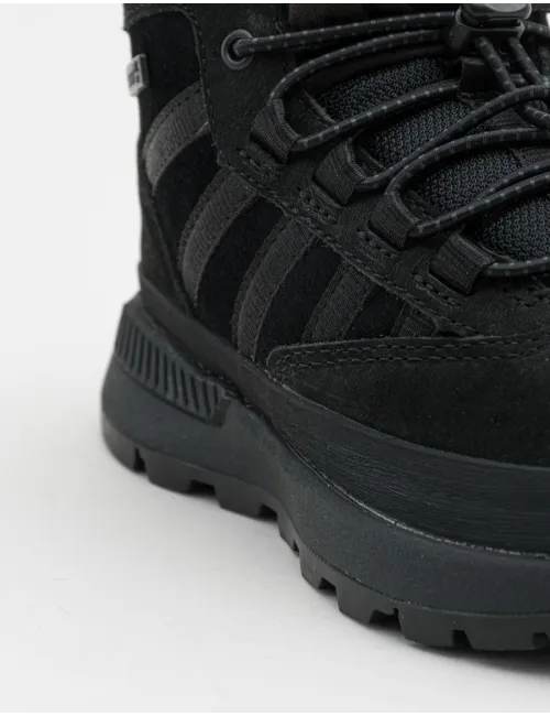Scarponcino hiker bimbo nero mid realizzato in nabuk Premium Leather di Timberland® e tessuto ReBOTL™ contenente almeno il 50% di plastica riciclata. Soletta OrthoLite® leggera e traspirante per un effetto ammortizzante. Soletta "Does it Fit?" rimovibile per sapere sempre qual è la taglia giusta. Chiusura con cordoncino elastico per indossare e sfilare la scarpa più facilmente. Tomaia in pelle e tessuto, interno in tessuto, suola in gomma.