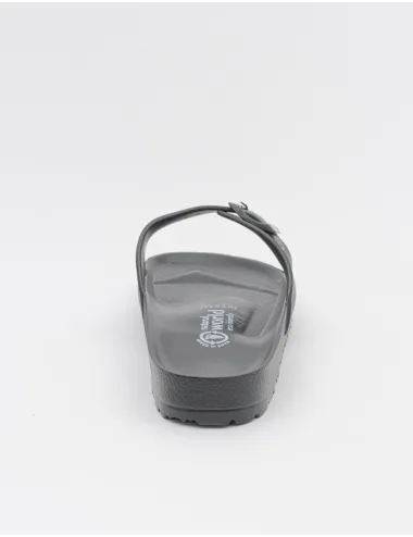 Ciabatta aperta donna nera. Prodotto di origine vegana. Suola 3 cm. Tomaia in ecopelle, interno in ecopelle e suola in gomma.