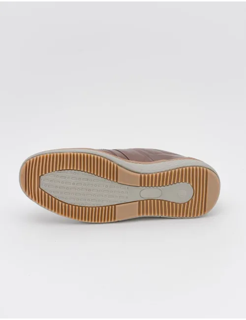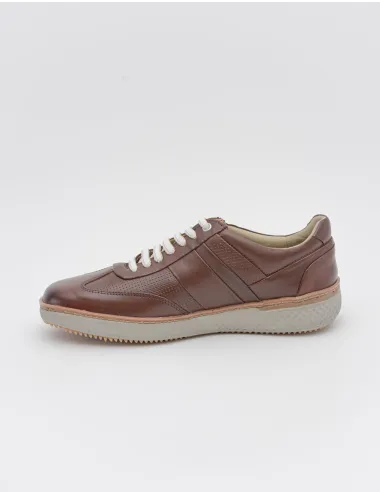 Sneakers uomo marrone, con punta traforata per una maggiore trasportabilità' del piede e con inserto laterale tono su tono. Presenta sul lato esterno il logo a stampa pressione tono su tono. Suola 3,5 cm. Tomaia in pelle, interno in pelle e tessuto e suola in gomma.
