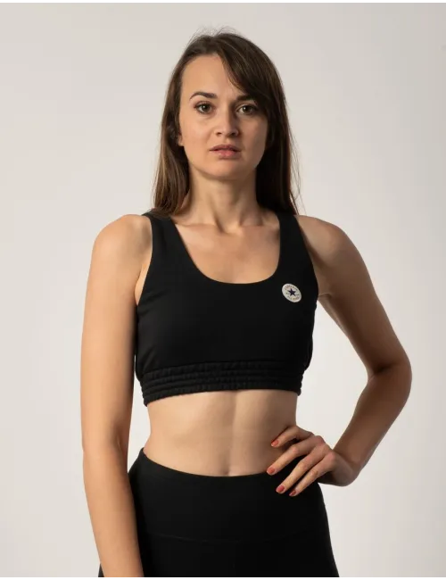 Top crop donna nero con patch Chuck Taylor. In cotone French terry per garantire il massimo comfort. Dettaglio con girovita elasticizzato e increspato. Prodotto realizzato con cotone organico. Materiali: 80% cotone e 20% poliestere.