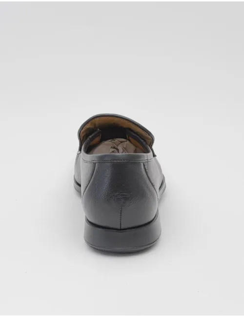 Mocassino in pelle uomo nero con punture pizzicate e traversino tono su tono. Sottopiede rivestito in pelle per assicurare traspirabilità e igiene. Suola 2 cm. Tomaia in pelle, interno in pelle e suola in gomma. Codice prodotto: 5681-VI.