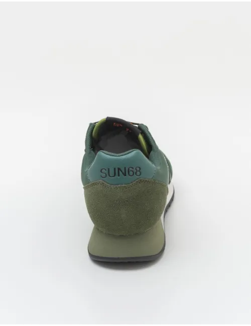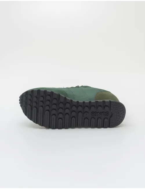 Sneaker Uomo realizzate in nabuk e tessuto verde con elementi in pelle e nabuk verde bosco. Allaccio tramite lacci con 7 passanti. Fodera in tessuto verde, sottopiede estraibile in tessuto blu, fondo in gomma nero. Dettaglio verde con logo stampato a pressione nero sul tallone. Linguetta verde chiaro. Suola: 3 cm. Tomaia in ecopelle, pelle e tessuto, interno in tessuto e suola in gomma.