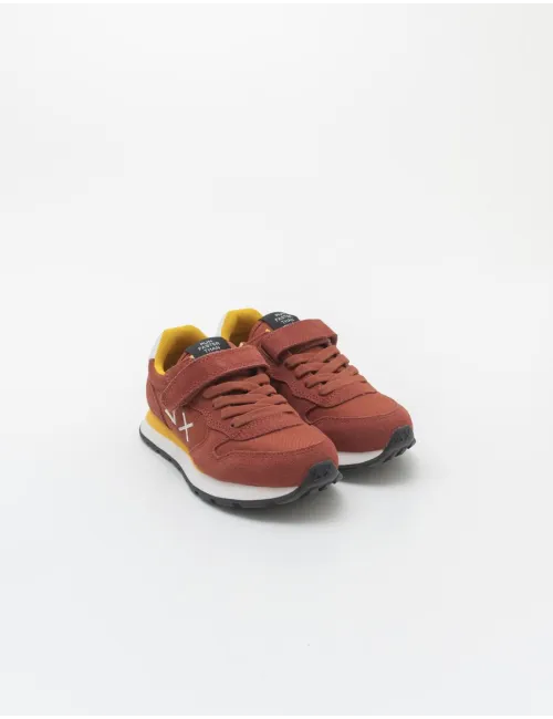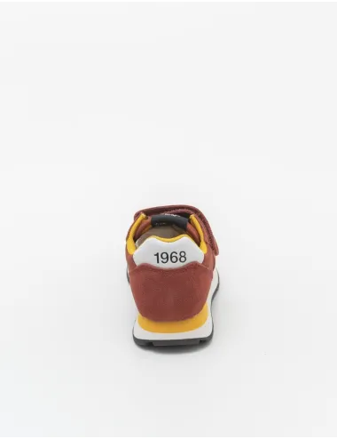 Sneaker bambino marrone chiaro con inserti in suede tono su tono. Logo ricamato a contrasto bianco sui lati. Chiusura con doppio strappo velcro regolabile. Dettaglio sul tallone in ecopelle scamosciato tono su tono e bianco a contrasto nero. Soletta navy memory comfort estraibile per garantire una maggiore igiene. Suola: 2 cm. Tomaia in pelle, tessuto ed ecopelle, interno in tessuto, suola in gomma. Codice prodotto: Z44301K