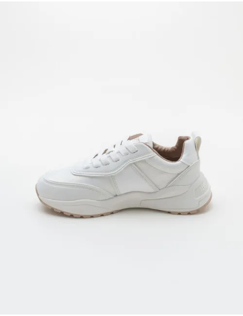 Sneakers donna bianco perla. Modello VEGANO. Chiusura con lacci, calzata stretta. Tomaia in Free Bio™, punta rotonda. Soletta interna removibile per un maggiore igiene. Dettaglio con scritta stampata a contrasto bronzo sul lato esterno. Dettaglio sul tallone con linguetta logata per facilitare la calzata. Tomaia in ecopelle e tessuto, interno in tessuto ed ecopelle e suola in gomma. Suola: 4,5 cm. CODICE PRODOTTO: EDW 8071 TWT