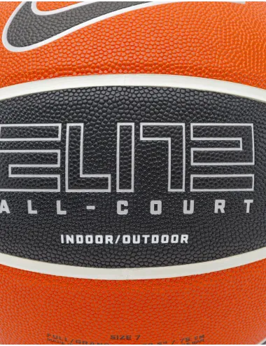 Pallone da basket nero con inserti a contrasto brunito. Logo swoosh. Robusto esterno realizzato in gomma per l'ammortizzazione, con motivo testurizzato per prestazioni superiori outdoor. I solchi profondi garantiscono il controllo. Dimensioni 74.9 cm. Taglia 10.
