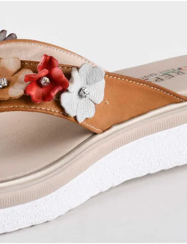 Sandalo donna latte in morbidissima pelle intagliata con contrasti cuoio. Piccola zeppa alta 4,5 cm. Chiusura con zip posteriore. Tomaia in pelle, innterno in pelle e suola in gomma