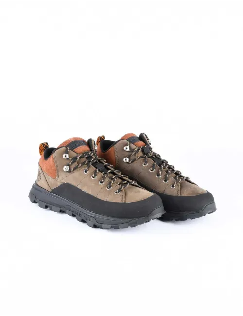 Scarponcino verde oliva trekking con contrasti cuoio e neri. Pregiato nabuk Better Leather proveniente da una conceria classificata Silver per le sue pratiche di gestione sostenibile dell'acqua, dell'energia e dei rifiuti. Fodera in tessuto ReBOTL™ realizzata con almeno il 50% di plastica riciclata. Elementi in metallo antiruggine. Leggera soletta OrthoLite® per un effetto ammortizzante. Intersuola in misto EVA a compressione. Suola preformata in gomma per garantire aderenza. Fascia laterale in gomma per una protezione ottimale. Tomaia in pelle, interno in tessuto e suola in gomma.