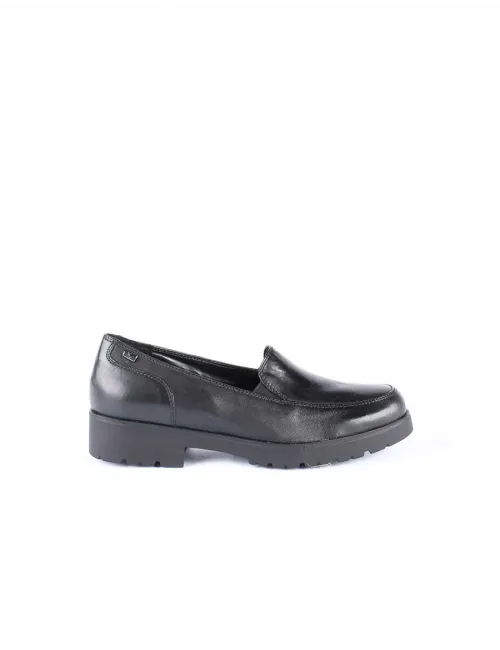 Scarpa nera con elestici laterali per facilitare la calzata. Tacco 3,5 cm con carrarmato. Tomaia in pelle, interno in pelle, suola in gomma.