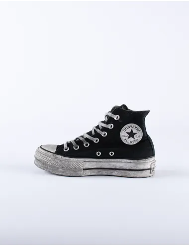 Sneaker nera platform, tomaia in tela, interno in tela, suola in gomma vulcanizzata.